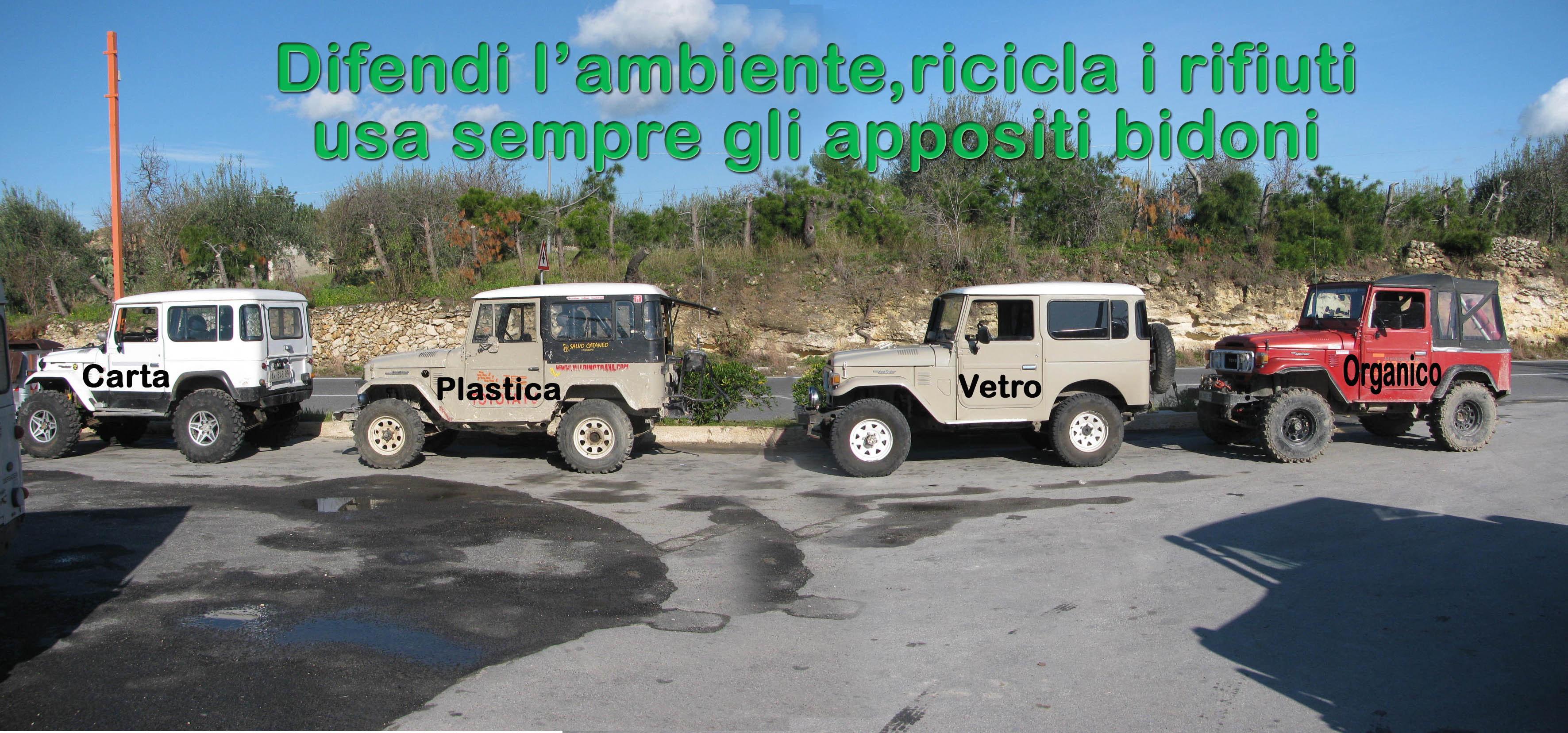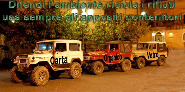 Il 4x4 Val di Noto è lieto di  annunciare che dal 2010 nel Comune di Noto verrà applicata la raccolta differenziata dei rifiuti, che sarà effettuata porta a porta (la sperimentazione inizialmente avverrà solo all’interno del centro storico di Noto), per poi essere allargata all’intera città, per  gli abitanti delle varie contrade, invece, verrano dedicate delle apposite isole ecologiche (vedasi  foto allegata). Vi ricordiamo di attenersi alle specifiche regoledi raccolta. Inoltre vogliamo ribadire quanto sia importante farla correttamente, infatti basti  pensare  che: